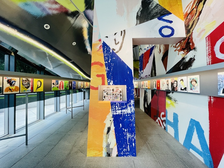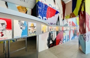 村上隆は、黄色と青という極めてシンプルな色彩によって表現され、新作のダミアン・ハーストは、荒々しい筆致で描かれた。こうして見てみると、いずれの作品も絵画とグラフィックの要素が融合していることに気づくだろう。