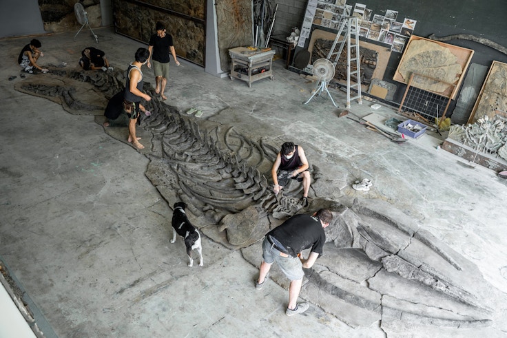 涂維政は1969年台湾⾼雄市⽣まれで、考古学的想像⼒と現代を接続する作品を⼿がけ、世界各地で活動するアーティスト。「奥能登国際芸術祭2020+」では、現地のクジラやイルカの⾻が出⼟する遺跡についてリサーチし、遺跡をモチーフとした作品を発表する。