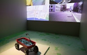 新人賞に選ばれた3作品も見逃せない。小林颯《灯すための装置》は、小型のレーザープロジェクターとロボットを使用し、暗い部屋のなかで白線による手描きのアニメーションが壁面に浮かび出される。科学未来館の7階会場では、実際に部屋に入ってパフォーマンスをするロボットたちを間近で見ることが可能だ。