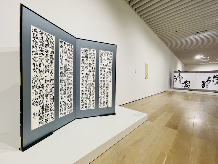 第1章「飛躍」では、10歳のときに書いた般若心経から、京都・建仁寺に奉納した《風神雷神》(2009)など、デビューからキャリアを重ねていく過程を見ることができる。