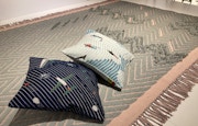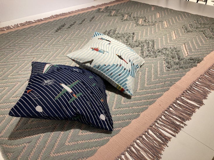 テキスタイルデザイナーの氷室友里は、ユーザーが自由にハサミをいれることで、絵柄が現れたり、造形が変化するクッションや絨毯を展示。テクスチャにユーザーの手が入ることで、新たな価値を生み出すデザインを提案する。