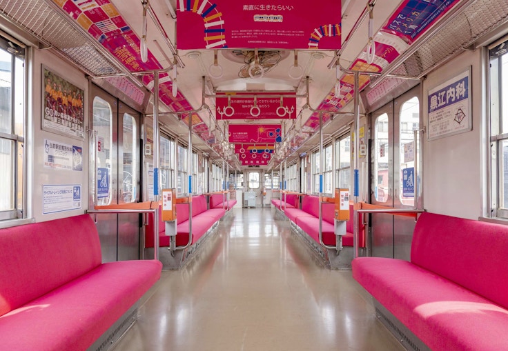 本企画は、弘南線沿線をアートを通じて巡ることで、地域の魅力を再発見し、さらなる滞在をうながすというもの。原は、鮮やかなピンク色をテーマカラーに、弘南鉄道弘南線の1車両を過去と未来をつなぐタイムマシンに見立て、ピンク色のアート列車「MAPPINK TIME MACHINE」を制作した。