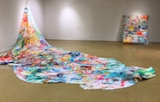 時に布をコンパクトにパッキングし持ち運び、共に旅をするようにして痕跡を残し続けるという作品を制作したり、空気を使って時間の流れの中で変化するという作品を作っている。