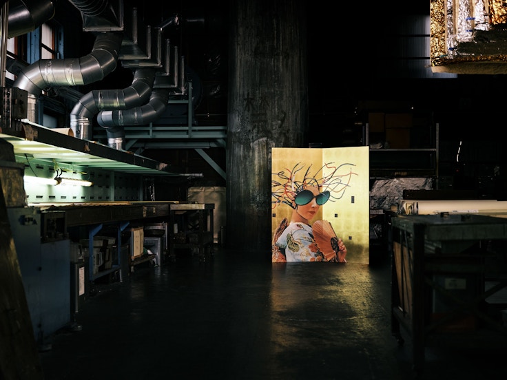 エレクトロニック・ミュージックを中心としたレコード会社、ユーマ株式会社が手がける、テクノと伝統工芸を融合したNFT証明書つき作品「TechnoByobu(テクノ屏風)」シリーズ。その第1弾として、ルー・ビーチによるイエロー・マジック・オーケストラ(YMO)のアルバムアートワークを洋金箔のうえに施した《Electronic Fan Girl》が、ウェブサイトにて受注販売を開始した。