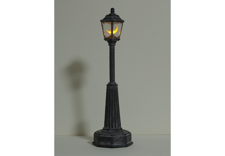 木材、金属、鉱物、電気部品など様々な素材を使い、機械、都市、記憶などをテーマにオブジェ作品を制作する内林武史。物語のなか、異世界へと誘う「マド」を表現した本のオブジェ《異空への窓・イクウヘノマド》では、木製の本箱の奥で幻想的な光を放っている。街外れの小高い丘に佇む街灯に月が灯る様子を表現した《丘の上の光り 305》は、心のなかにだけ存在する風景をかたちにした温かくノスタルジックな作品だ。