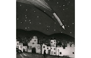 稲垣足穂の書籍の装画、挿画で知られるまりの・るうにいは、ルフランのパステルで足穂の宇宙世界を表現。関西では初めての展示であり貴重な機会となる。《スパークする彗星》は電信柱の並ぶ人影のない通り、美しい閃光を放ち、降りそそぐほうき星の群を描いた作品。