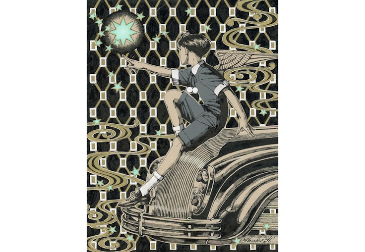 少年を主題に幻想的な世界を描く漫画家・鳩山郁子は、その卓越した画力により表現領域を広げ、様々な技法を駆使した絵画作品を発表。本展には足穂の小説から着想を得て、独自の解釈で描いた作品を多数出品。美しく細やかな筆致で描き込まれた作品に想像力が掻き立てられる。