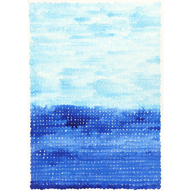 窮屈で混沌とした状態を整理するような感覚、コントロールできないものをコントロールしようとする感覚。そして、間違いや偶然から生まれる発見と、絵のなかに飛び込むようなトランス状態、そのなかに生まれるセラピューティックな色とかたち。これらの様々な感覚が、インクの動きを用いることで作品内に落とし込まれている。