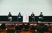 作品の上映後に行われたトークイベントには、内藤廣をはじめ、STUDIO4℃プロデューサー・田中栄子、そして制作時に内藤の事務所で本作を担当をしていた湯浅良介が登壇。当初考えていたという食虫植物のような空港や、マンタのかたちを模したモビリティの設計案について、当時の構想やアイデアスケッチをスクリーンに映しながら振り返った。