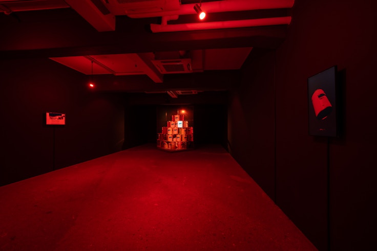 大原崇嘉、古澤龍、柳川智之の3人によるアーティスト・コレクティブであるヨフは、視覚メディアにおける色彩、空間などの研究や実践を通し、特殊な照明や空間構成の相互作用により、色の現出をコントロールし、新たな視覚体験を生み出している。本展では、現実と仮想空間との「接続」を試みるいっぽうで、デジタルイメージにおいて唐突に「切り抜き/貼り付け」られた画像のように、対象と周囲の環境との視覚的な「遮断」を実空間で実現させるといった双方向的なアプローチから、現在におけるリアリティや実在性を考察している。