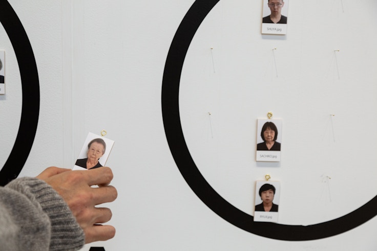 20点ほどの写真が直線でつながる作品もあり、これは《Eco system》と名付けられている。特殊詐欺という事象自体が、持続的なシステムを築き上げていることを示しているのだろうか。