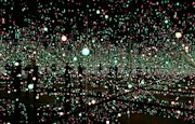 草間の代表作シリーズのひとつである「インフィニティ・ミラールーム」は、様々なバージョンがつくられてきた。「2000年以降、草間さんの作品では『魂』という言葉がタイトルによく使われるようになった。この作品では、光が空間のなかで浮遊する草間さんの魂、または一つひとつの命を表現しているかもしれない。光のパターンも意図的で複雑に組められており、草間さんが見せたい世界がここで結実していると言える」(渋田見)。