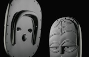 また「Urushi Sculpture」は日本の漆芸とアフリカのマスクが出会った作品シリーズ。アフリカの木彫りマスクは、漆芸職人の大河原勝、大西長利、松島さくら子らの協力のもと、漆を塗り重ねて平滑なフォルムへと変容している。