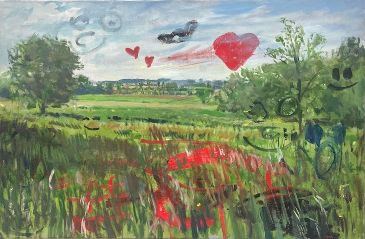沓名キュレーションの「架空と現実を行き来するSNS時代のアート達」は、虚構と現実の挾間を見つめて表現活動を行うSNS世代の3作家を紹介するもの。現実の風景にキャラクターや植物が浮遊する白昼夢のような絵画を描く宏美、ゲームやVRなど二次元や仮想空間とそこに介在するキャラクターへの関心を起点に、物質と非物質の関係性に着目し、イメージの肌触りを想起させる絵画を描いてきた下村悠天、そしてアニメーションやゲーム、現実の風景などを組み合わせて映像作品を制作するハンガリー生まれのセマーン・ペトラ。沓名は3作家の表現を「多国籍的で、ポップで、愛くるしく、毒々しい、現代の肖像であり、新しい時代の表現記号」としており、「SNSというパラレルワールドが高度に、そして複雑に占有領域を拡げ続けているいまだからこそ、その中から生まれる新しい価値観を見つめてみたい」と語っている。