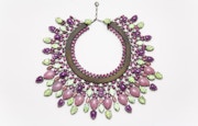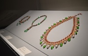 第2章「躍進した様式美 ヨーロッパのコスチュームジュエリー」では、ヨーロッパの様々な工房によるクチュールジュエリーが集積。独自のガラス技法を駆使したメゾン・グリポワ、ヴェネチアンビーズを効果的に使用したコッポラ・エ・トッポなどの工房によるオリジナル作品だけでなく、シャネル、ランバンなどのオートクチュールメゾンへ提供された作品が一堂に会する。新たな素材や技法によって生み出された、ファインジュエリーの模倣に縛られない、自由なデザインや質感を楽しむことができるはずだ。