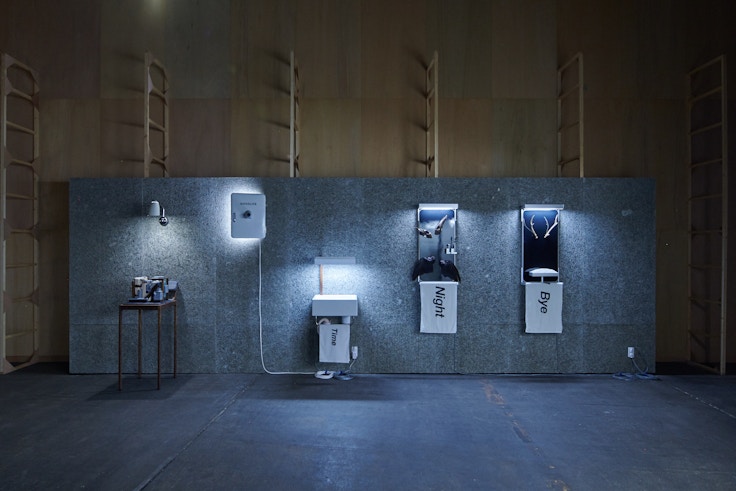 部屋などをモチーフに機械の構造を用いた立体作品で近年注目を集める宇留野圭。本展では、2021年から24年までの作品の変遷を見ることができる。とくに存在感を放つ《17の部屋 - 耳鳴り》(2021)は、その名の通り17の部屋が複雑に組み合わせられたもの、パイプオルガンの構造が用いられており、空気が通り抜けることで見えないつながりが音として表出する。プライベート空間と社会との関係性を表現する宇留野の代表的な作品のひとつだ。