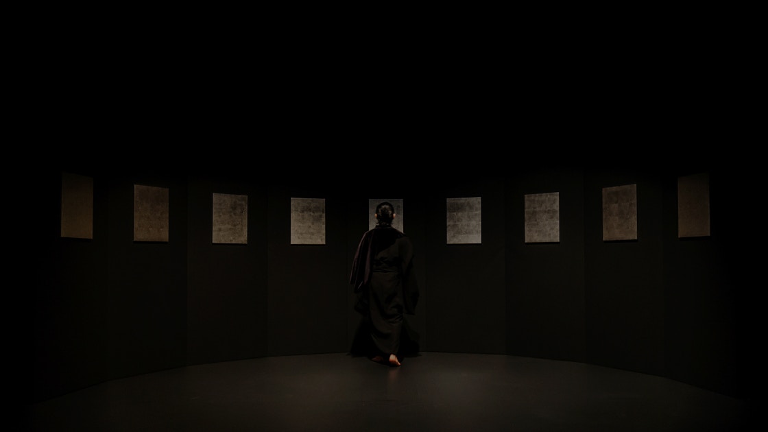 「BLACKOUT/WHITEOUT #0」で、ホール全体を視覚を拠り所にできない闇と光という二つの空間へ演出し、そのステージの只中に描くものを持たずに自らを立たせた山口。最初に聴こえてきた自らの足音や呼吸が起点となり、一筆目をキャンバスへ刻み、作品を生み出した。この1時間ほどの舞台を降りた後のステージに残された筆音の痕跡を山口は「絵画」と名付け、人がこの世に誕生してから去るまでのような「生きる鼓動」から直結した筆音を「リサイタル」と名付けた。