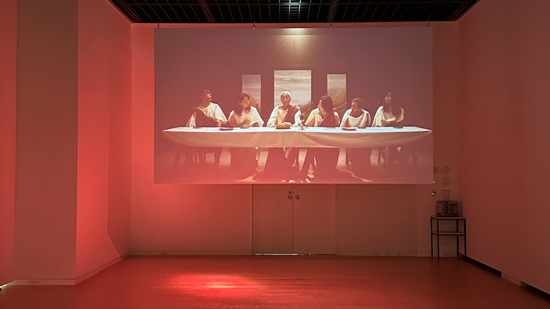 コミュニティや社会から疎外された人々を描くことをテーマに、個人的な記憶と社会問題を織り交ぜた映像作品を制作する石原。本展出品作《重力の光》では、北九州市にあるキリスト教会に集う人々が聖書劇をつくる日々を記録したもので、苦難を抱えながらも懸命に生きる人々の姿を、希望とともに描いている。