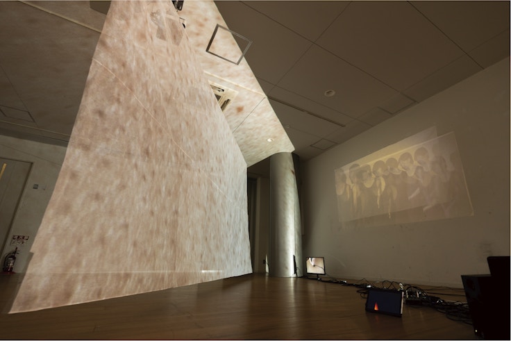 鈴木は、糸を自ら染め、手作業で織り上げた平面作品を展示する。その作品は、一本一本の糸に込められた手の感触が美しく、時間の流れや記憶を感じさせるものだ。森本は、動物の足やお尻などの部分に焦点を当てた陶芸作品を制作し、手で造形をコントロールしつつ、窯での焼成過程を自然に委ねる技法を駆使している。辻は、デジタルではなくアナログの手法にこだわり、映像という素材を人の力でどう変容させるかを探求するインスタレーション作品を発表している。