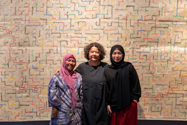 今回の受賞について、イー・イラン、ロジア=ビンティ・ジャラリッド、ジュリタ・クリンティンは次のようなコメントを寄せている。「ほかのアーティストの⽅々と並んでこの場にいることを⼤変光栄に思います。まず第⼀に、私たちのコラボレーターの皆様に感謝を申し上げます。2018年からともに活動してきました。そして、セムポルナ、ケニンガウ、コタキナバルにいる私たちの地元のコミュニティや織⼯の皆様にも⼼から感謝しています。また、この場を設けてくださったCHAT、ANTEPRIMA、審査員の皆様、シルバーレンズ・ギャラリーにも感謝いたします。私たちにとって、テキスタイルは魔法のような存在です。マットはまるで空⾶ぶじゅうたんやポータルのように、別世界へと私たちを誘ってくれます。だからこそ、テキスタイルには⼤きな⼒があります。それは多くの知識やアイデアへの扉を開いてくれるものなのです。CHATでの展⽰は、テキスタイルがいかに豊かなものであるかを物語っています。この約7年間は⻑い道のりでしたが、⾮常に実り多い時間でもありました」。