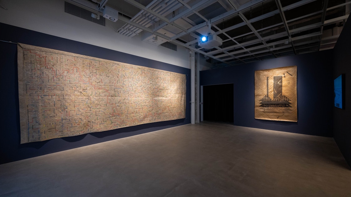 受賞作となった《Jalan-Jalan Cari Jalan(道を探して)》(2024)は、ボルネオ島北東部のスールー海と、セレベス海から回収されたプラスチック廃棄物を素材に制作された迷路状のパターンのティカ。この地域は豊かな海洋⽣物多様性で知られるコーラルトライアングルの⼀部でありながら、プラスチック汚染にさらされている。作品の縦⽷と横⽷には、地元コミュニティがこの差し迫った課題に向き合い、交錯する様々な影響の迷路を切り開き、道を探る姿が迷路状のパターンとなって織り込まれている。