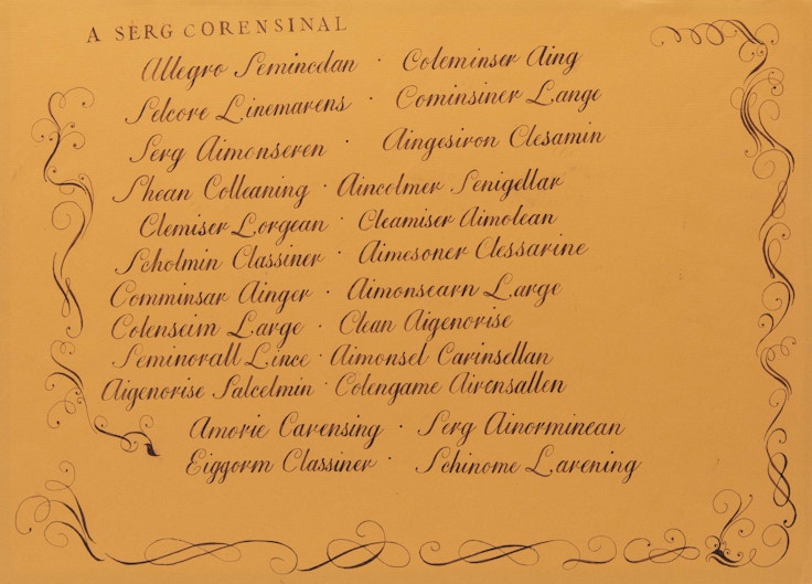4つめの「文字をこえて」は、見慣れた文字が言葉の意味や規則から解き放たれ、新たなコミュニケーションをつくり出すような作品を紹介。ここでは、文字の原理的特性を追求している立花文穂、文字を高い密度で重層化させながら世界を反映させる平野喜靖、一見美しいカリグラフィですが実は錯覚を呼び起こす上土橋勇樹の作品を紹介する。