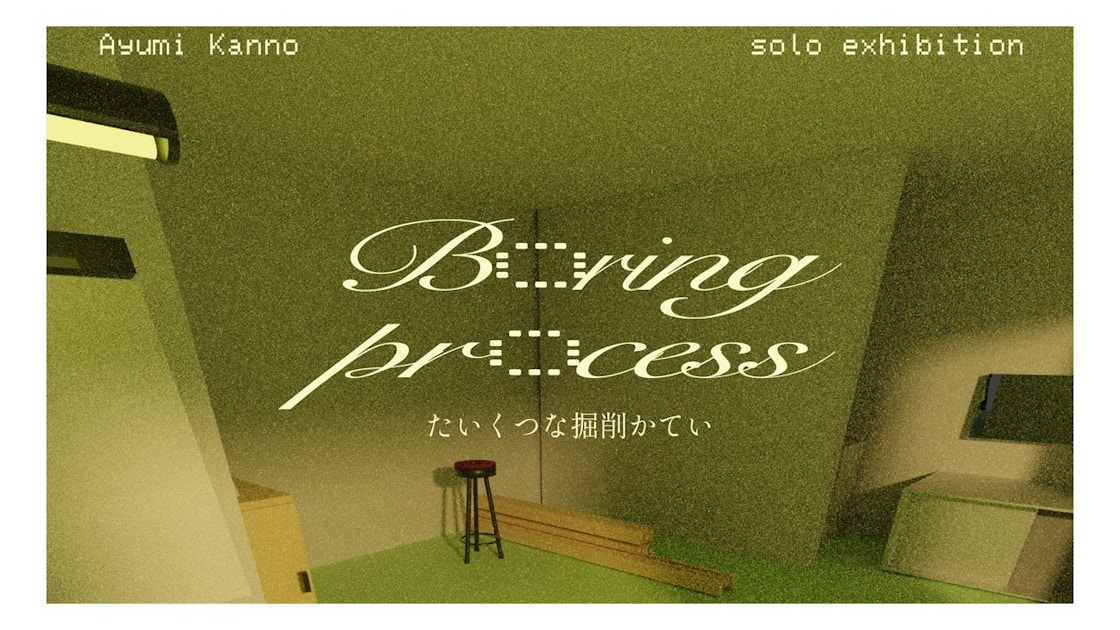 菅野は本展に際して次のようにコメントしている。「こうしたモノや記憶を掘り起こす終わりの見えない整理作業の過程は『退屈(boring)』である一方で、地盤調査のための『掘削(boring)』のように、家庭の長い年月の堆積物を掘り起こし、社会の大きな流れのなかで見えなくなっていた個人的な時間の層を可視化する行為でもある。「たいくつな掘削かてい」は、私の家庭にまつわる物理的な整理と記憶の整理が交差する場であると同時に、そこに訪れた鑑賞者もまた、自らの記憶や歴史を掘り起こし、思いがけず退屈ではない時間を過ごすことになるかもしれない」。
