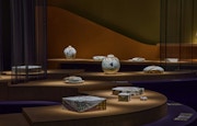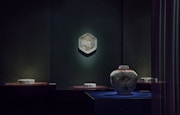 色絵磁器とは白磁の上に色絵具で文様を描いたやきもののことを云う。藤本能道(ふじもと・よしみち、1919~1992)は、写実的で奥行のある色絵を追求し、1986年に色絵磁器の重要無形文化財保持者(人間国宝)に認定された。平面的な文様ではなく、絵具の濃淡でモチーフを立体的に描き、そのモチーフの背景に水彩画のような淡い景色を表すことで器の奥へと広がる遠近感ある独自の色絵表現を生み出した。
