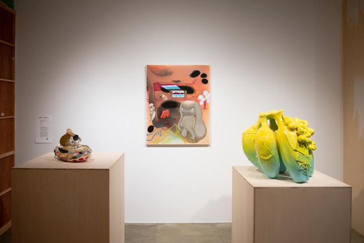 韓国の陶芸家であるヤン・ホンジョは、絵画と陶芸作品のミクストメディアの作品《バナナとウサギ》を発表。靴をしばしばモチーフとするヤンは、「失われた靴たちがなりたいと願う、儚い憧れの対象」としてバナナを、「そんな靴たちを助ける存在」としてウサギの精霊を作品に表した。大学時代のつらい時期に心を慰めてくれたバナナのお菓子と、幼少期に大切にしていたペットのウサギから着想を得たというこの作品からは、記憶とファンタジーの融合を読み取ることができる。