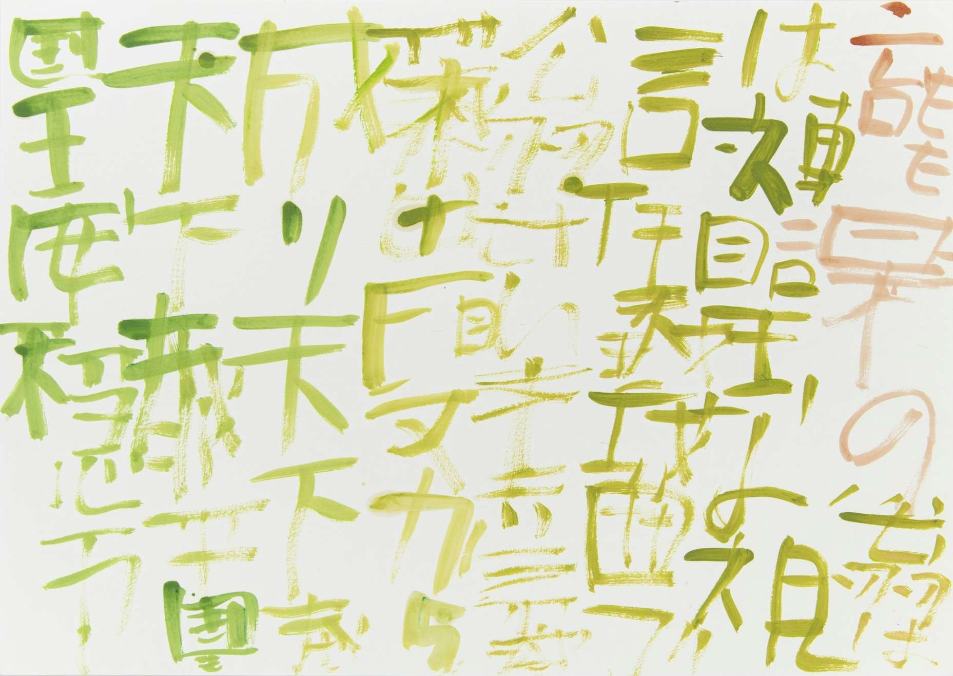 「学びのかたち」は、幼少期に身につけた技を礎に、独自の展開を遂げるかたちにフォーカス。ここでは、紙を切るルーティーンから始まりシステマティックな手法で絵画や紙の立体制作を続ける森本絵利、絵具の混色の原理を学んだことをきっかけに、色に魅了され、筆を丁寧に引き続けることで鮮やかな色面の絵画を生み出すかつのぶ、歌舞伎や能に幼少期から嗜んだ経験と学校や施設で学んだ書写が融合し、独自の文字世界を表現する松本国三、工務店を営む家庭に生まれ釘や金槌が身近にあり、精神を安定させるかのごとく釘を一心不乱に打ち続けた平田安弘が紹介される。
