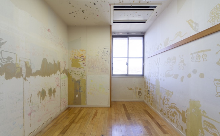 2つ目のキーワードは「記しと気づき」。誰に見せるでもなく描き、表現し続ける動機には何があるのか──人はなぜ絵を描き、ものをつくるのかという「作り手」の問いに加えて、自分のための記しが他者に見出され共有されたときに、どのように受け止められるのかという「受け手」 の価値についても考える。画材がない環境でも描くことに貪欲で、居室の壁紙を唾液で剥がしながら好きな 世界を表現し続けた勝山直斗とその行為を尊重したことで残された壁画の写真、牛乳パックのロゴやバーコード、成分表を細かく切り刻み、透明ケースに重ね続ける日課を10年以上続けている中根恭子の記録写真、そして「なぜ人は絵を描き・見せ・見るのか」という問いを軸に、私的な線や記述が他者との出会いのなかで変容していく「出来事としての絵画」を探 究する高田マルが紹介される。
