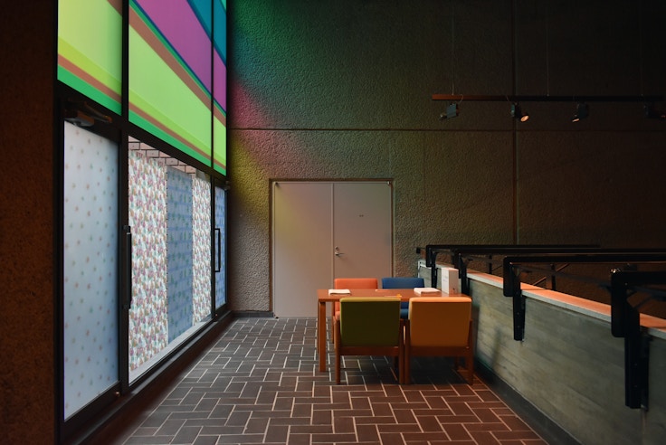 モダニズムを代表する建築家・前川國男が40年以上前に手がけ、改修を重ねながらもその雰囲気をいまに伝える東京都美術館。杉戸はこの空間に自らの感性を反響させ、ここでしか見ることのできない景色を生み出した。「展示室を自分のリビングルームに見立て、この空間そのものを綺麗に見せたいと思った」という言葉の通り、この展覧会で杉戸は空間の制約をも味方にしている。