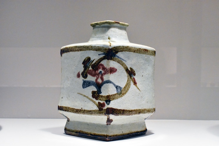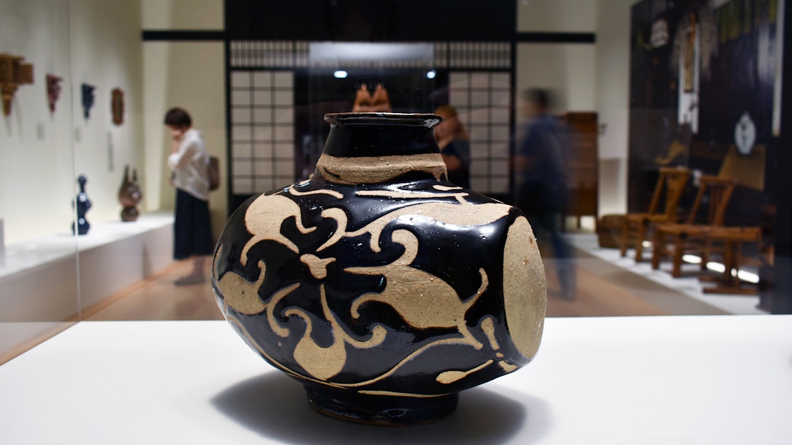 また、1937年のパリ万博に出品され、グランプリを受賞した《鉄辰砂草花図壺》(1935)や、57年のミラノトリエンナーレでグランプリを受賞した作品とまったく同型の《白地草花絵扁壺》(1938)、そしてパナソニックが所属する作品など、貴重な品々が揃う。