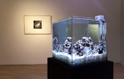 ノーベル化学賞受賞者、パウル・クルッツェンが提唱した新たな地質年代である「人新世」。この名称を関したセクションでは、ロバート・スミッソンやマーク・ダイオンといった作家たちが人間が環境へ与える影響を直接的に示唆した作品が並ぶなか、AKI INOMATAは代表作である《やどかりに「やど」をわたしてみる》を展示。3Dプリンタでつくられた都市模型の殻にヤドカリを住まわせるこの作品。殻、つまり都市は人間のアイデンティティでもあり、また移民問題やグローバル社会などを見ることもできる。