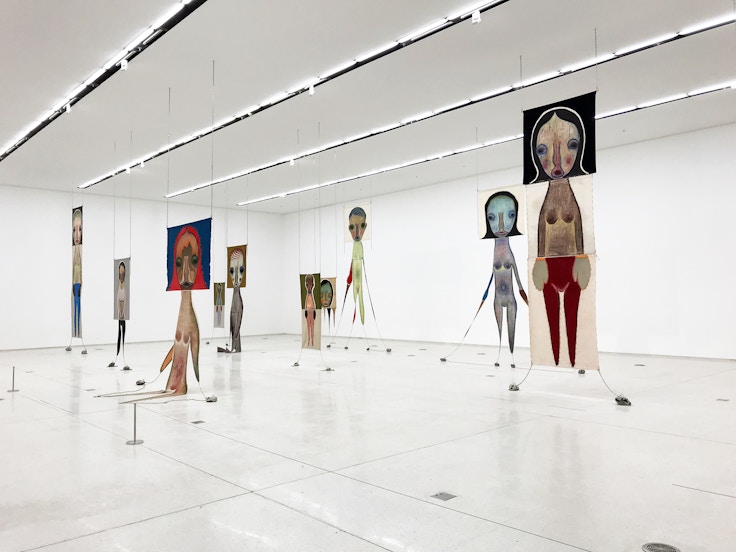 本展では、ドローイングからペインティング、木彫、石彫、そしてファブリックを使った大作まで、50点以上の作品を展示。