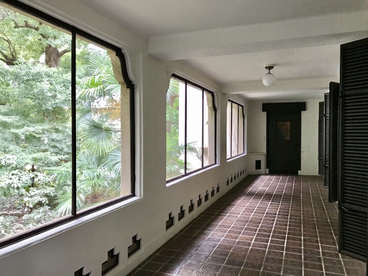 同邸宅は1927年に建設された洋館だ。木子七郎によるスパニッシュ様式の意匠デザインを特徴としており、東京都の有形文化財に指定されている。これまで一般公開されることなく維持されてきたが、今回の個展で初めてその門戸が開かれた。