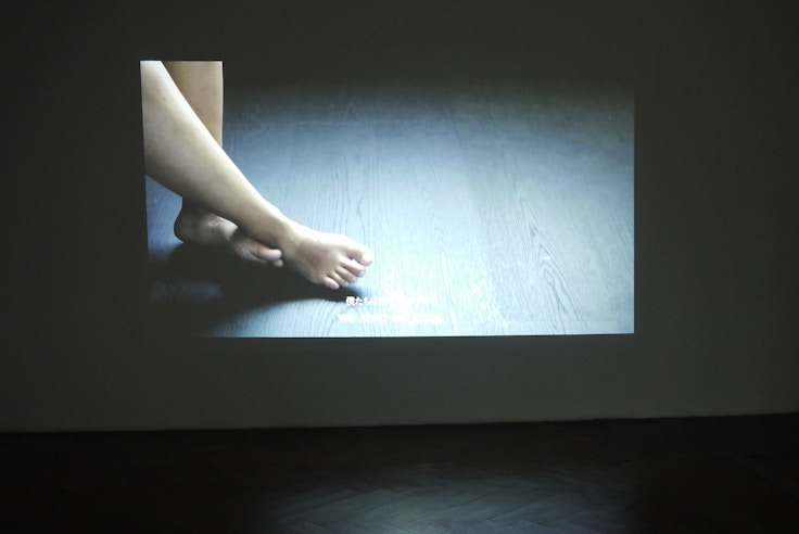 続くGALLERY 2では、展示空間の中央で素足をくねくねと動かす映像が、「手」や「歌」など別の感覚器官を示す字幕とともに流れる。足のみをモチーフとした簡潔な映像でありながらも、抽象的かつポエティックな字幕が作用して鑑賞者を深い洞察に誘う作品となっていた。