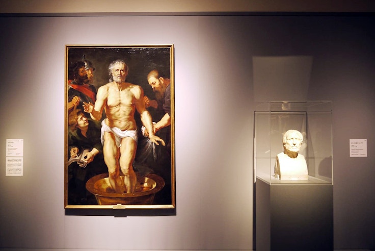 続く2章の「過去の伝統」では、8年間のイタリア滞在によって成熟を迎えたルーベンスの表現に迫る。1600年にイタリア・ヴェネチアへ渡ったルーベンスは、2度のローマ滞在などを経験し、古代彫刻を研究。素描を通して理想の人体像や感情表現の方法を学んだ。さらにラファエロ、ミケランジェロら盛期ルネサンスやマニエリスムの芸術家、あるいはカラヴァッジョなど同時代の画家の作品にも学んだとされる。《セネカの死》(1615-15)は、ローマで目にした彫刻をほぼそのままのかたちで画面に取り入れた作品のひとつだ。