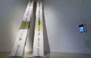 加藤はこれまで、東日本大震災を契機に福島県いわき市で行った「11.3 Project」をはじめ、現地の人々を巻き込みながらある目的のために協働し、その様子を映像で収めるという手法で作品を制作してきた。展示室の奥に設置された《Pass Between Magnetic Tea Party》では、映像にも登場する巨大なテーブルが空間に突き刺さり、現地の残り香を伝える。ホワイトキューブ(こちら側)と、フィジカルな運動が実践される映像(あちら側)をつなごうとする試みは、果たしてどのように作用するのか。会場で確かめてほしい。
