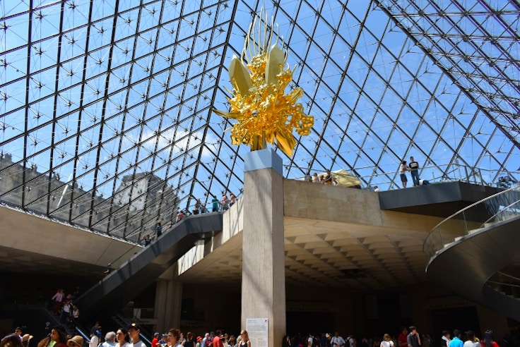 ルーヴル美術館を象徴するガラスのピラミッド。ここで、名和晃平が日本人として初めて作品を展示したのが2018年7月のことだ。日仏合同プロジェクト「ジャポニスム 2018」公式企画の一環として、高さは10メートル以上の巨大な立体作品《Throne》が展示された(同館での展示は2月18日まで)。