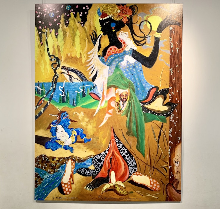 なお会場最後では、横尾忠則が本展のために制作した特別作品を見ることができる。横尾は出品作家の中から6作家の図像部分をコラージュ。さらに横尾の個人的関心から、挿絵などで活躍した作家・藤井千秋(1923〜85)の絵の一部を盛り込み、「江戸から昭和へと続く奇想の流れを現代に位置付けることを試みた」という。
