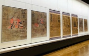 また、本章では空海の貴重な筆跡も見ることができる。空海から最澄に宛てた3通の書状を貼り継いだもので、第一通書き出しの「風信雲書……」の文言から「風信帖」の通称を持つこの筆跡は、平安時代仏教史の基本史料として貴重であるとともに、書道史上も古来珍重されてきたものだ。