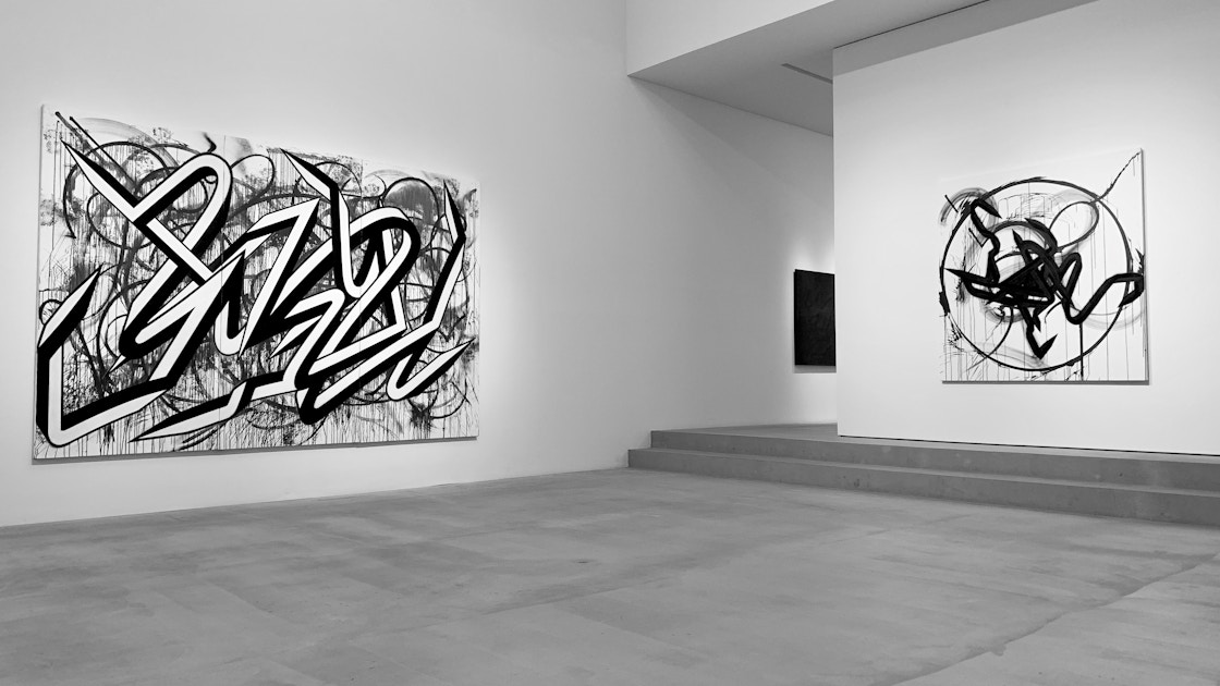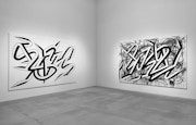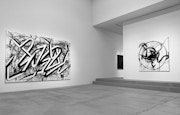 この「自由の回廊」を抜けると、そこが「VIRAL」の展示室となる。今回、17年にニューヨークで制作したライブペインティング作品に、スタジオでQTSを加筆した新作の《FFIGURATI #184》(2019)をはじめ、大小様々な作品を見ることができる。