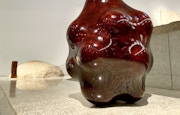 受賞作の《Surface Tacitility #11》(2018)は、抽象的なフォルムをした漆の立体。乾漆技法と天然漆を基本に、何層にも振り重ねられた漆が、どこまでも深く、複雑なテクスチャーを生み出している。メッシュ袋に入ったオレンジを着想源としたという本作について、ジョナサン・アンダーソンは「彼は漆の知識を使いながら次世代の作品をつくりだした」と評価する。「漆は何百年もの歴史がありますが、(これは)タイムレスな作品だと思います。千年後につくられたとしても不思議ではありません」。