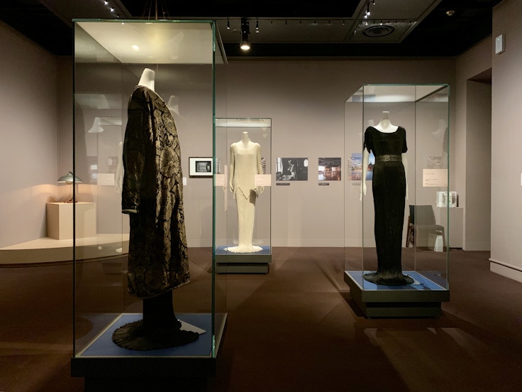 矯正下着が不要なデザインであるデルフォスは、20世紀のファッションへとつながる画期的なものだった。本展では、島根県立石見美術館や京都服飾文化研究財団、共立女子大学博物館などが所蔵するドレスの数々が並ぶ。