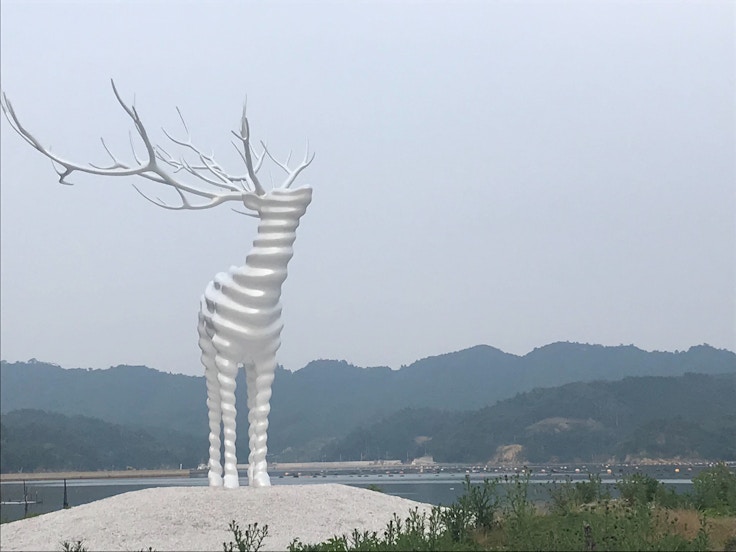 前回、名和はここに巨大な鹿のかたちをした彫刻作品《White Deer(Oshika)》(2017)を設置。この作品は、Reborn-Art Festivalの象徴として、現在も同じ場所に佇んでいる。