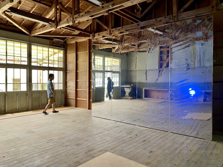 またこの「美術館」の周囲には、BIENによる防潮堤と鏡合わせになるような巨大壁面《Throgh the Mirroring Wall》(2019)が設置。