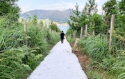 島袋自身は、(自然と近いがゆえに)大きな防潮堤ができてしまったこの地域で、新たに「自然とつながる場所」を制作。20年近く使われていなかった遊歩道を、約30トンの白い砂利によってRebornさせた。来場者はそこをただ歩くのみ。歩ききったその先にどんな風景が迫ってくるのか、ぜひ現地で確かめてほしい。