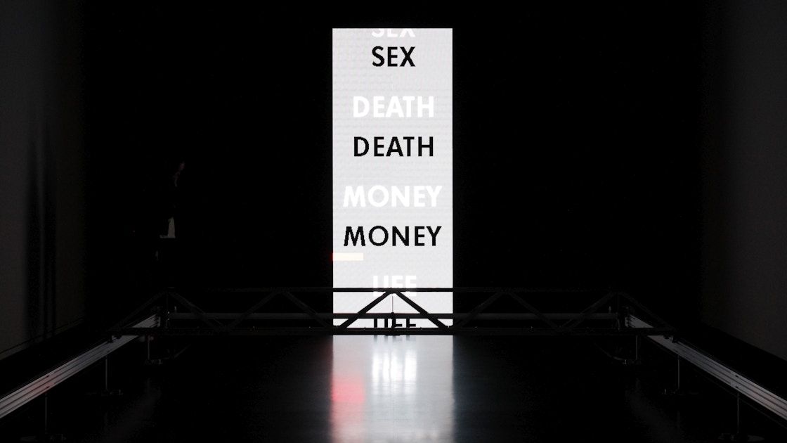 そして展覧会の最後を飾るのは、《pH》(2018)と《LOVE/SEX/DEATH/MONEY/LIFE》(2018)。前者は90年初演のパフォーマンス《pH》の象徴的な舞台装置を再現したもの、後者は94年の映像をコンピューターグラフィックスで再制作した作品だ。