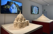 また、ダ・ヴィンチが構想して実現しなかった建築設計案《集中式聖堂》と《大墳墓計画》、ミラノ宮廷の軍事技師として取り組んだ様々な武器や機械を、3DCGアニメーション映像と縮小模型で再現し展示している。